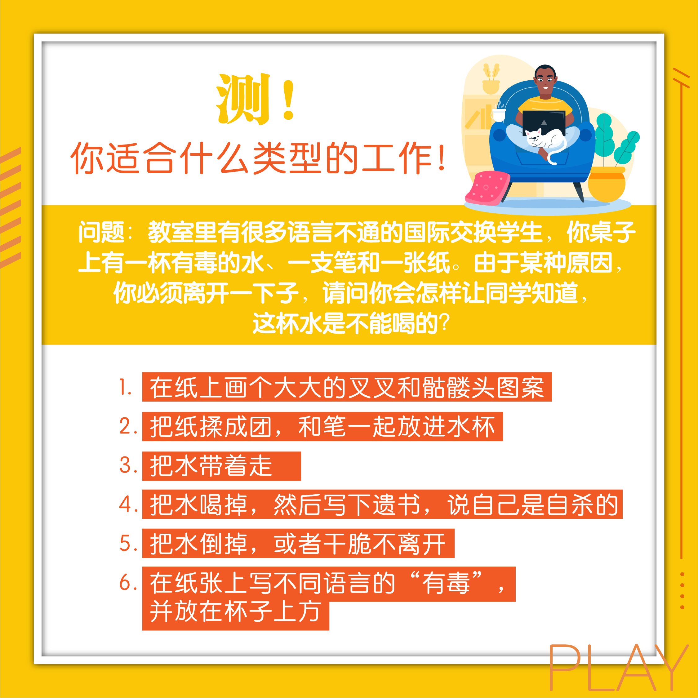 刚刚考完SPM?大学毕业?是不是很烦恼自己应该要进哪个领域读书或工作?在还没找到自己方向前,我们来玩一玩心理测验,看看你偏向什么性质的职业!