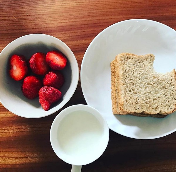 演唱会前夕需要进行严格身材管理,Joey经常自制健康早餐,一碗水果、两块全麦面包和一杯奶,既含丰富纤维和饱肚感,又能摄取每日所需的蛋白质和钙质。