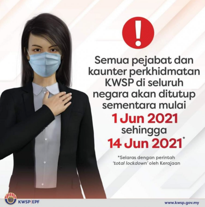 已经预约要到KWSP的民众们也要注意,全国的KWSP柜台都会关闭至6月14日,除了不要扑空外,也要记得在封锁起结束后,需要重新挑选预约时间,再进行作业处理!