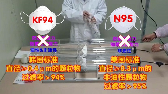 KF94:口罩对于平均直径0.4μm的颗粒物过滤率大于94%