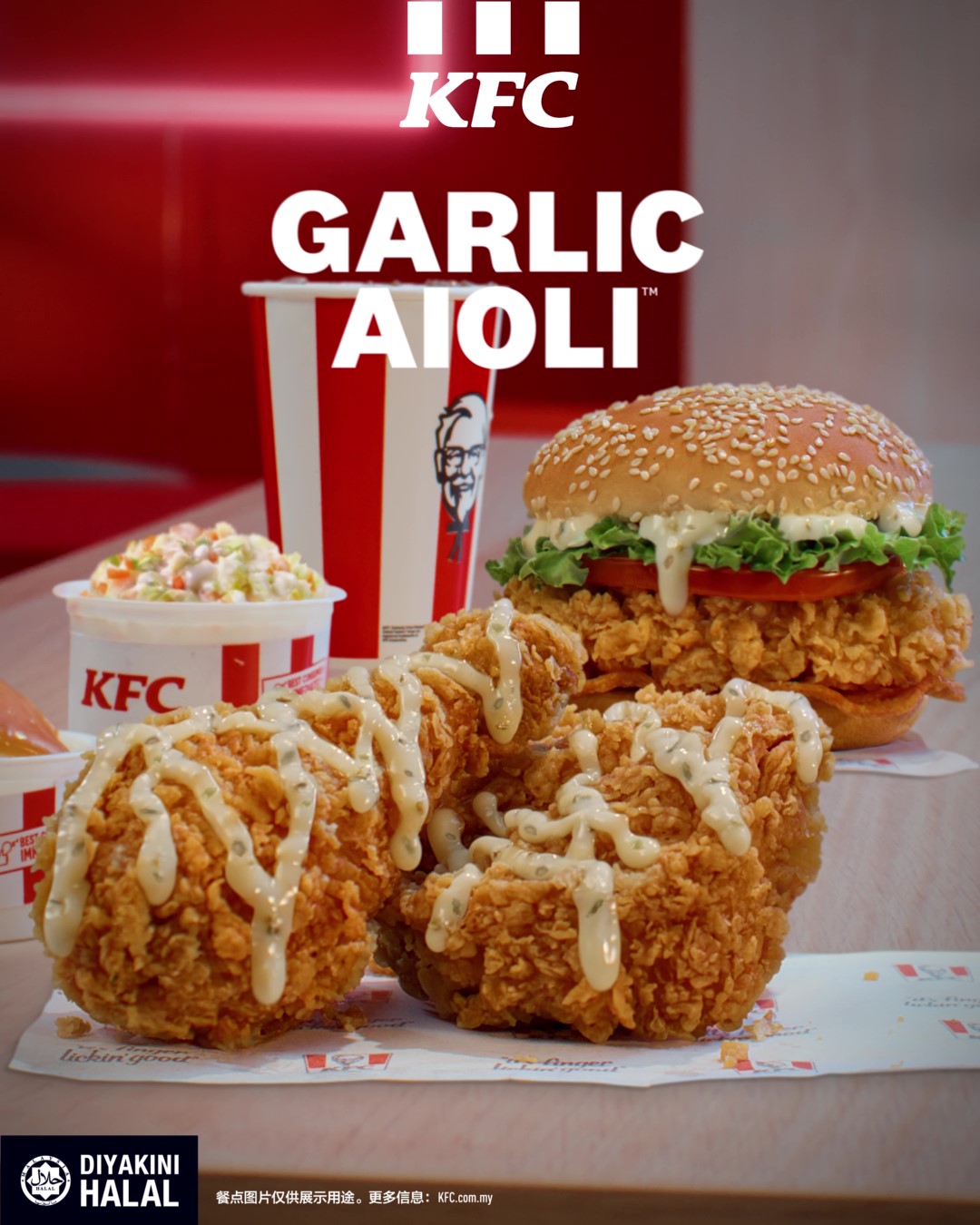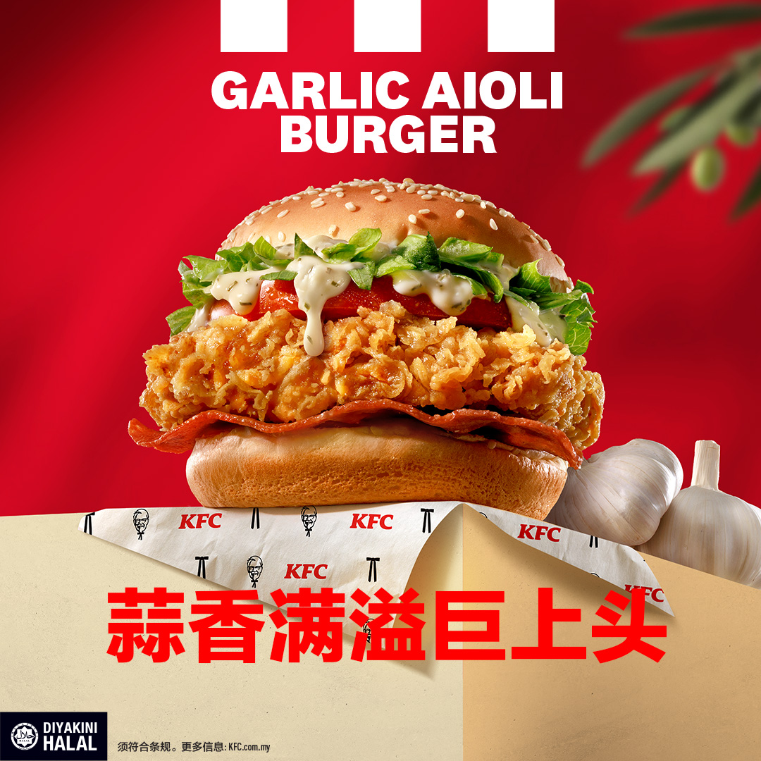 Garlic Aioli系列已在全国KFC门市限时开卖,这是一个让你重写“白酱定义”的机会。不管你是炸鸡控、汉堡粉,还是就是想试试特别口味,现在就出发,去你最近的KFC门市,或者上KFC Delivery官网/APP,立刻享受这一口蒜香爆击!现在就去购买吧!