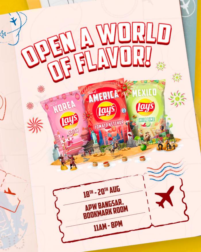 为了配合3款限量版薯片的推出,Lay’s也在Bangsar的APW中举办了Lay’s Flavor Around The World - Hall of Flavor活动,从进门口开始就能看到Lay’s和旅游元素无所不在,还有美国、墨西哥和韩国的「世界照相亭」,处处都好适合拍照!里头还有「味道之轮Giant Round the Flavor Wheel」、「Guess the Flavor 猜猜薯片口味」的游戏环节,据悉只要完成小游戏就能得到小礼物喽!Lay’s 的快闪活动将会在2023年8月18号开始到20号之间对外开放,大家经过就不要错过喽~