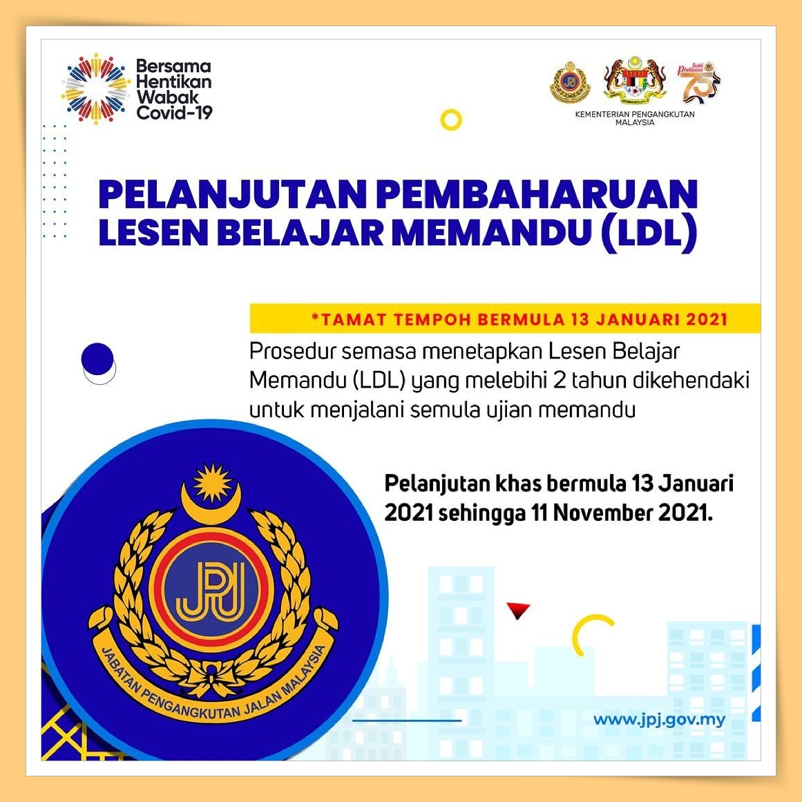 JPJ发布文告,所有从今年2021年1月13日之后的逾期驾照,将宽限期延长至2021年11月11日。