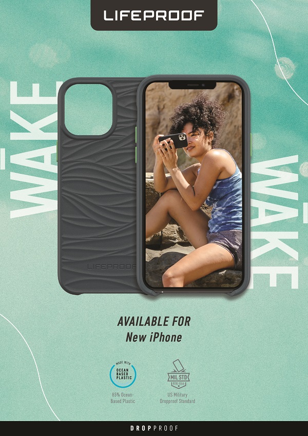 WĀKE采用纤薄一体式设计,由至少85%的海洋再生塑料所制成。 LifeProof收集钓鱼线及鱼网等商业渔捞工具,避免其被剪开或丢弃到海里。 此类废料所制成的聚丙烯强韧耐用,打造出LifeProof史上最纤薄、可长期使用的保护壳。 WĀKE通过6.6英尺(2米)高度防摔测试,加上边缘稍微提高的设计,能在正面冲击时保护手机屏幕。