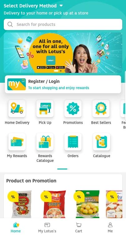 如今,可透过应用程序下载Lotus's App,使用手机号码登录或注册,新的应用程序和界面更方便你使用。透过线上看看有什么新的促销优惠,再加到你的购物篮,完成订购后付费。