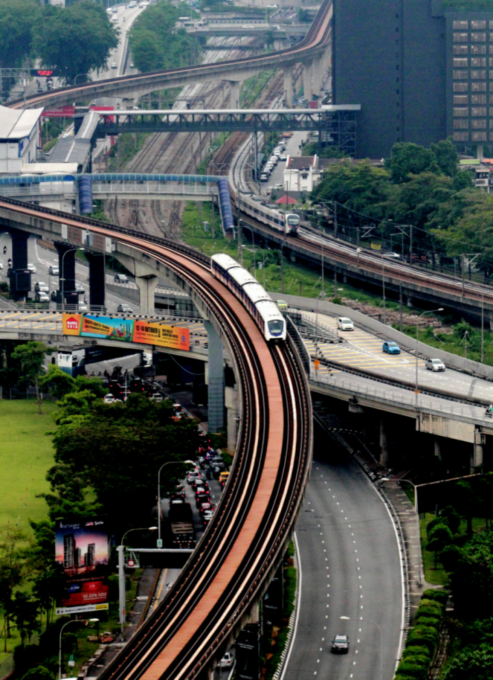 3 KL Monorail - 全长8.6KM的KL Monorail 串联着市中心的金三角地带,从1993年开始动工,间中经历了金融风暴,历经10年直到2003年的8月才通车。