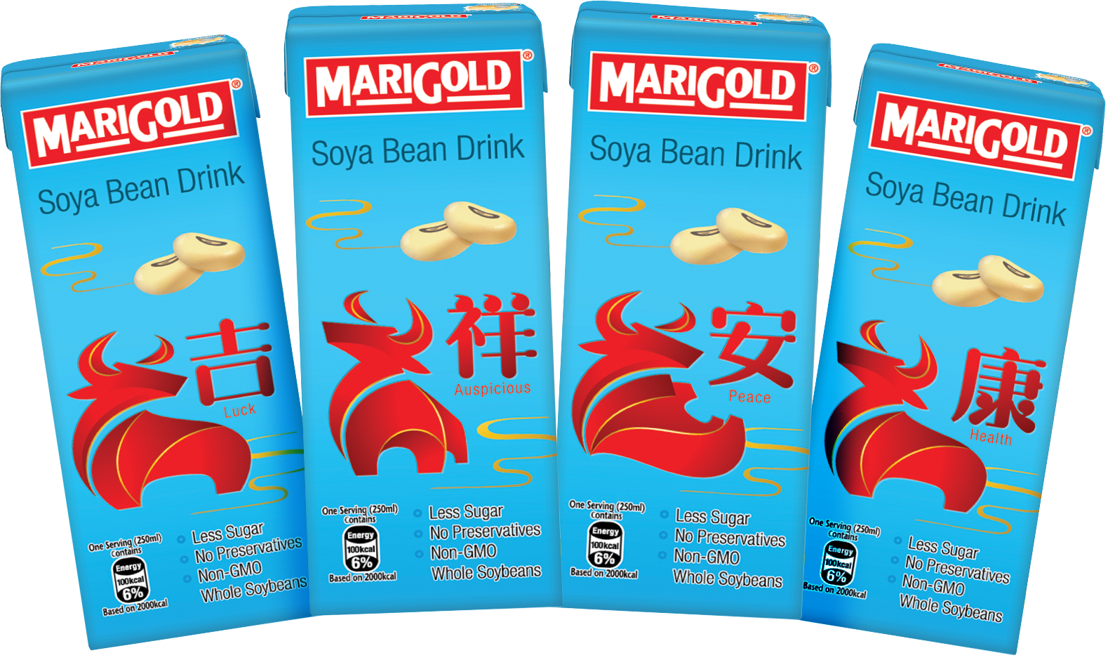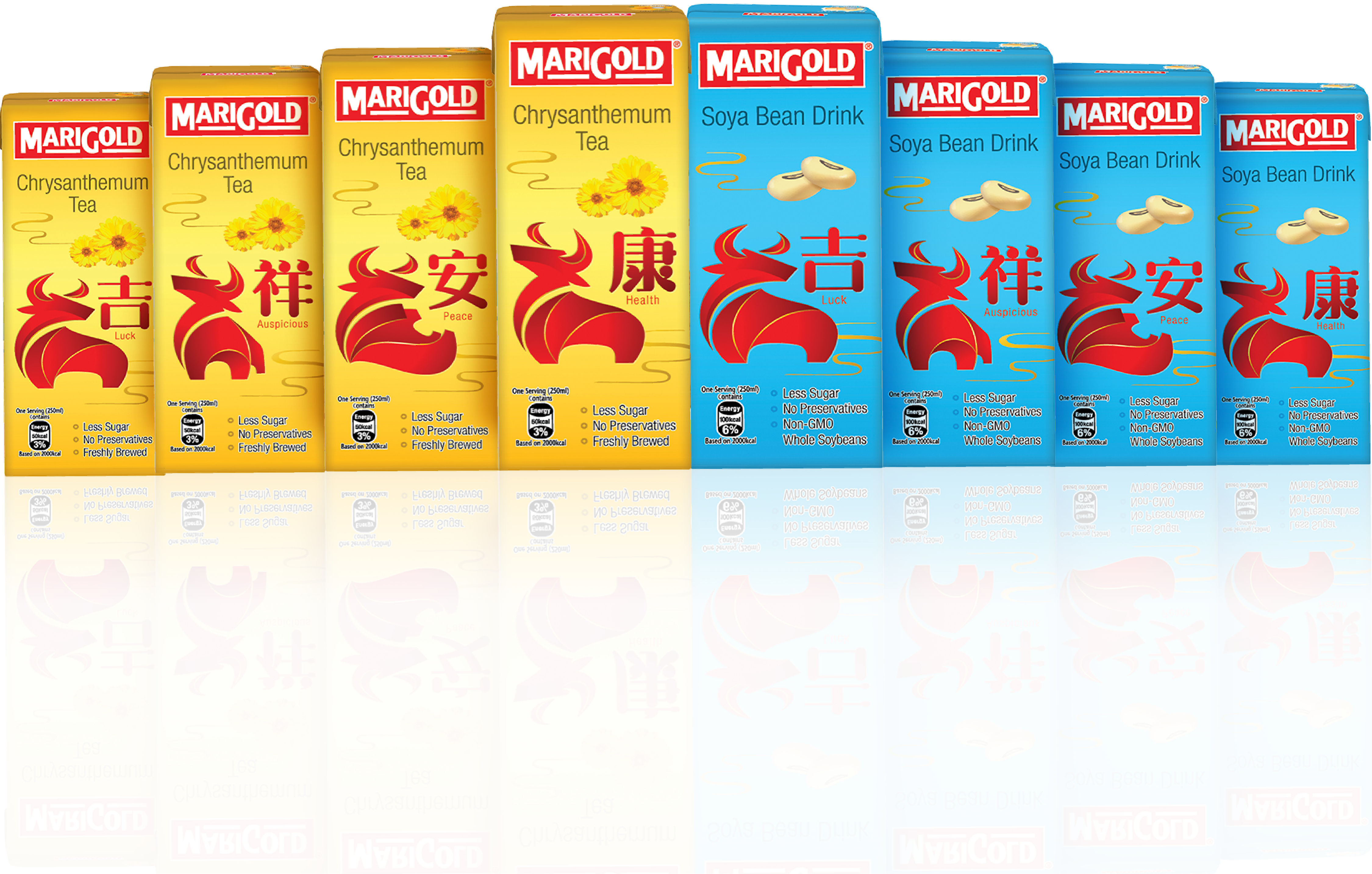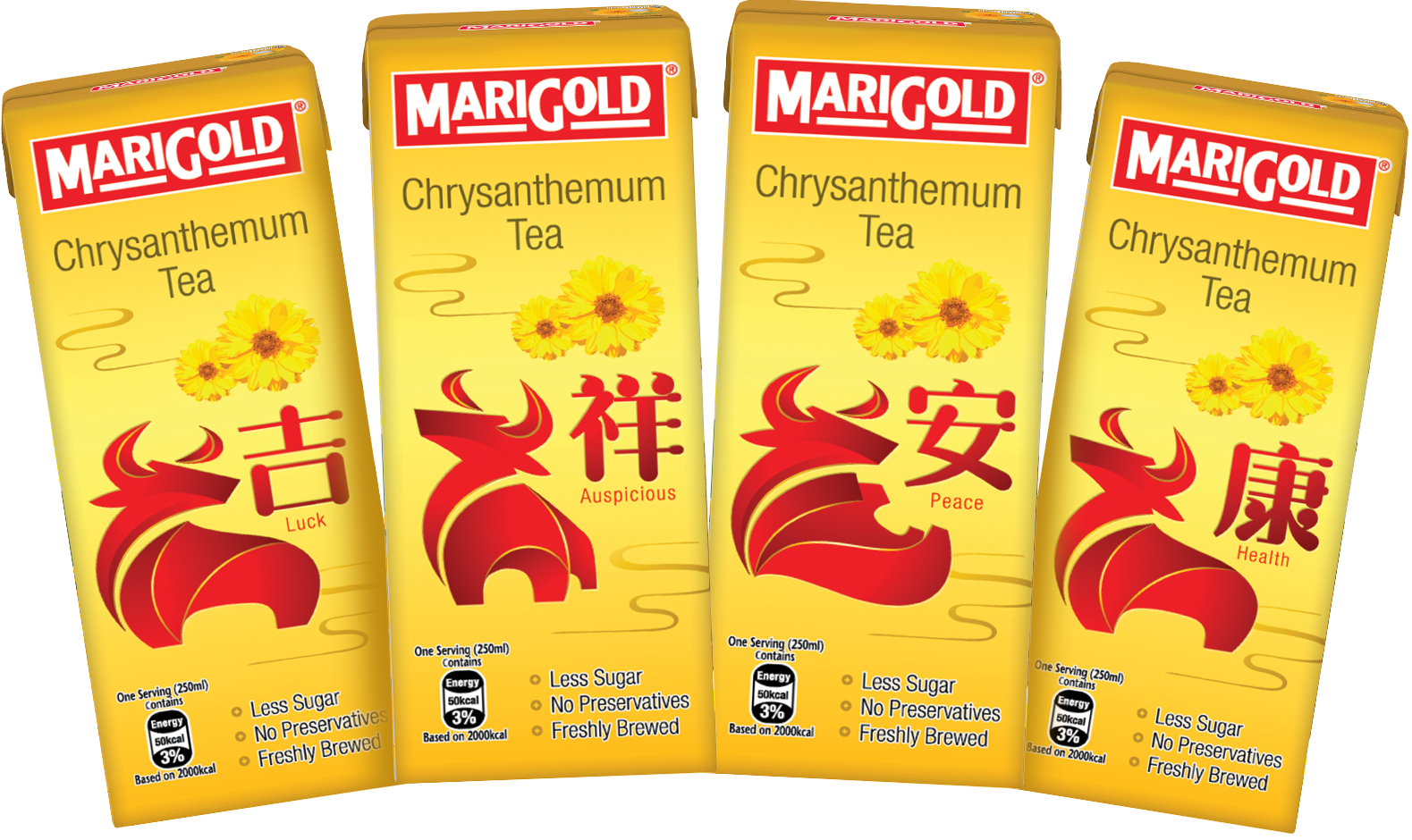 配合充满喜气的农历新年,MARIGOLD推出限量版“吉祥安康”菊花茶和豆奶口味的吉利包装,送礼自用两相宜!