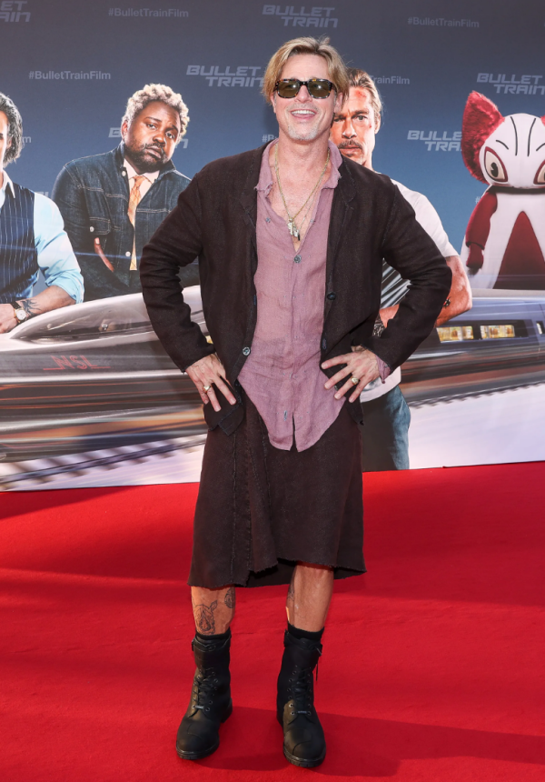 男生穿裙有问题?还是只是一件衣服而已,没什么好喷?Brad Pitt日前在欧洲开始展开电影《子弹列车》的宣传,而欧洲近日频频创下高温纪录,Brad Pitt到柏林宣传的时候索性穿上清凉的裙子却被认为议论纷纷,其实过去穿裙子的男星可不少呢!