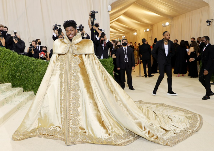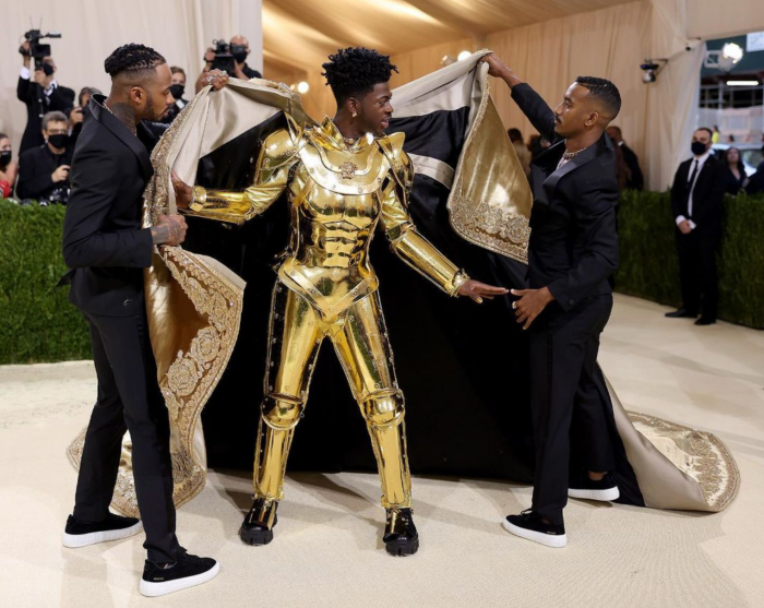 ⬇️ Lil Nas X 应该是抱着必赢的心情吧小编猜!看来是致敬Lady Gaga上回在红毯上换衣,他也以黄金圣斗士的装扮亮相。
