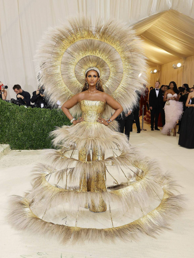 ⬇️ 超模Iman就是「大」来呈现自己,尤其是那顶超级浮夸的帽子,完全是无法被忽略的存在。