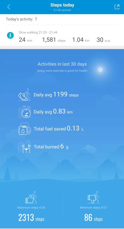 ✅ Mi Smart Band 6 可以记录每天的步行记录和运动量,以及燃烧了多少脂肪等等。