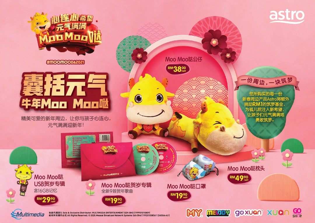 除了看到Moo Moo 哒的真身,大家想必很想要带他回家,不负众望,今年Astro依然推出吉祥物公仔,让大家一起和吉祥物庆新年。