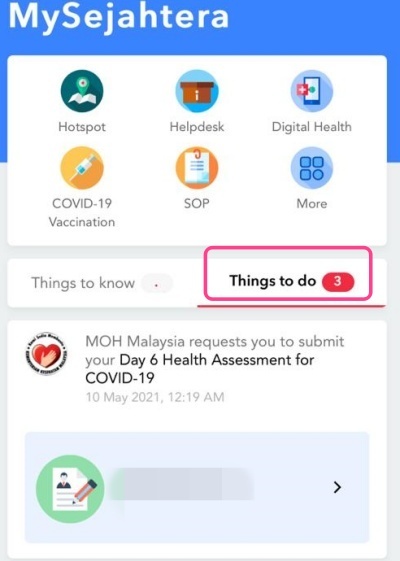 近年,大家的手机里肯定有下载MySejahtera App,因为现在进入任何的商店或商场都需要使用它来登记,那你有没有发现近期收到一个通知?即在Thing To Do那里的红点呢?