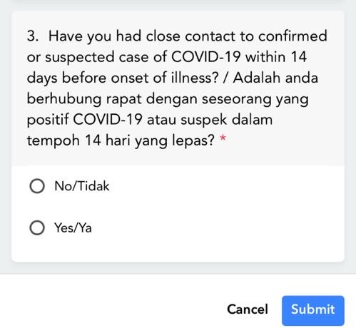 当你打开MySejahtera App有没有发现Thing To Do有个红点,然后点进去是要你汇报个人健康状态?其实不用担心,因为你之前到访热点地区,于是当局透过登入记录要求非密切接触者(Casual Contact)连续10天汇报健康状态!在这项维持10天的汇报健康记录,每天需要回答3道问题: