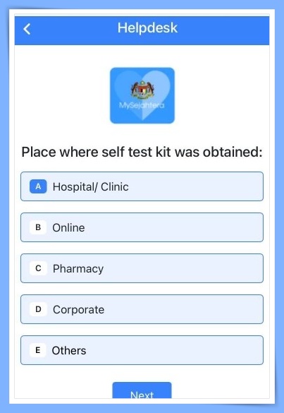 这次MySejahtera带来的新功能是自我检测报告和SOS求助功能,民众可以透过MySejahtera上传自我检测报告,同时也可以通过新增设的SOS求助功能,随时向卫生部求助。