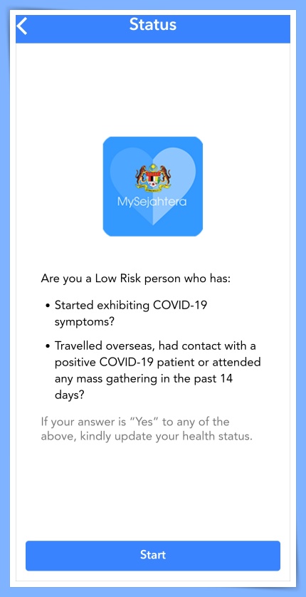 在App里的COVID-19 Risk Status会依据你回答的问卷而更改,如果最近你有出现冠病症状、接触过确诊者或出现过确诊病例的地方,你的COVID-19 Risk Status将会更新去其他颜色,像黄色、橙色或红色!其实没有规定要更新,不过可以的话就更新一下比较安心。