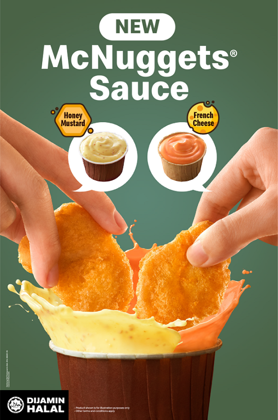 配合这项新列入菜单的美食,麦当劳也推出多款餐后甜点,包括令人垂涎的焦糖奶油芝士派(Caramel Cream Cheese Pie) 和咸焦糖冰淇淋(Salted Caramel McFlurry) ,也可以试一试仅在有限的时间推出的麦乐鸡(McNuggets)的新蘸酱——法国芝士( French Cheese) 和蜂蜜芥末(Honey Mustard)。