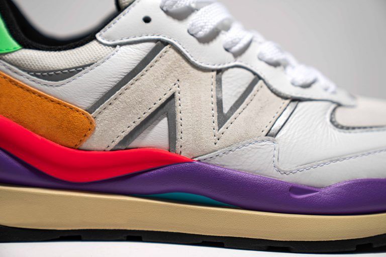 New Balance 57/40是以1988年的经典鞋款New Balance 574作为设计蓝本,同时保留了574原本的80年代的鞋形轮廓,再加以90年代鲜色配搭,且最大亮点是采用巨大的「N」字logo好吸睛!