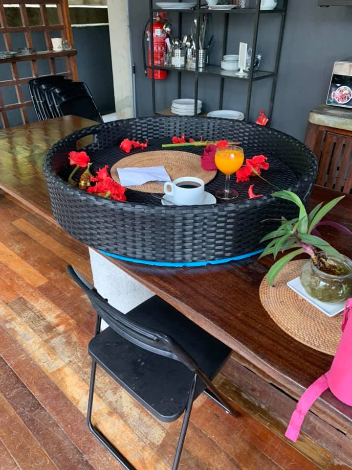 原本预订了浮起的篮子在泳池拍照,结果女网友看到泳池太肮脏了,决定不下泳池!
