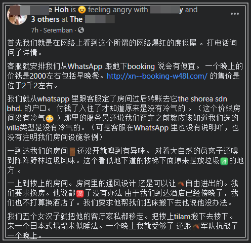 由于不能出国,本地人都Cuti-cuti Malaysia,有一名来自吉隆坡的网友近日到芙蓉一间著名度假屋旅行,带着满心欢喜与期待前往度假,结果带着满满的投诉结束旅程,而且在网络发文控诉。