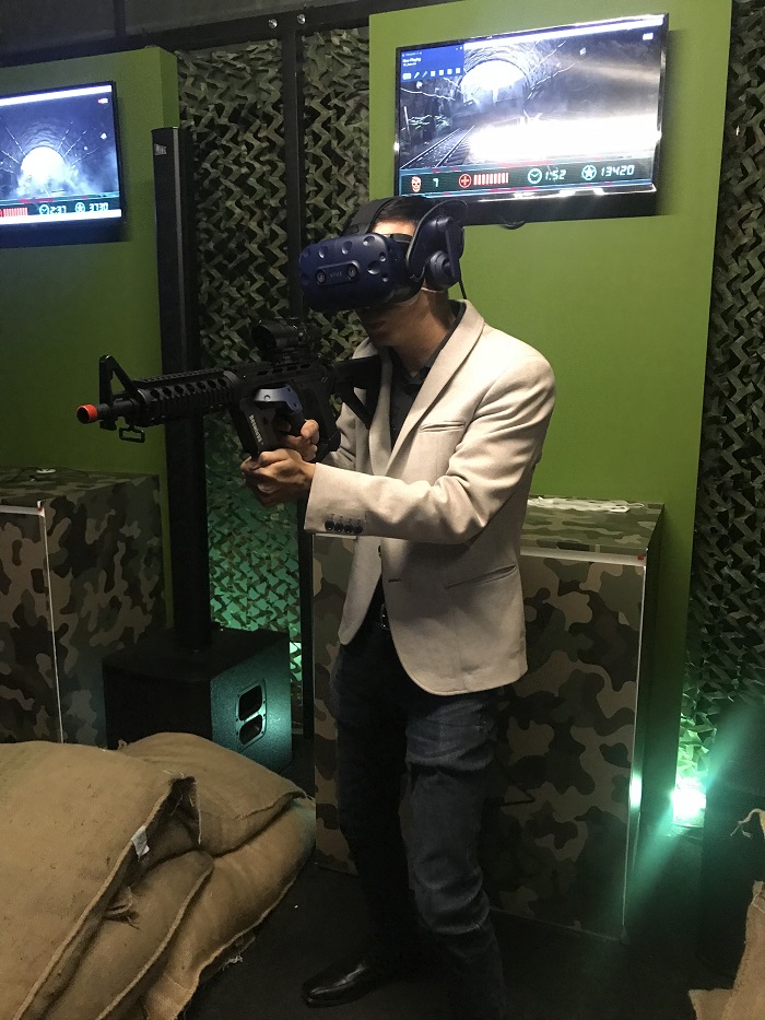 挑战完两座鬼屋,大家可以到大本营区去体验VR射杀丧尸游戏,带上VR摇身成为韩国士兵,捍卫釜山隔离区免受丧尸的侵袭,完完全全就是电影的结局情节。这个游戏能缓和之前鬼屋的紧张情绪,作为最后一站的体验是最适合不过了。