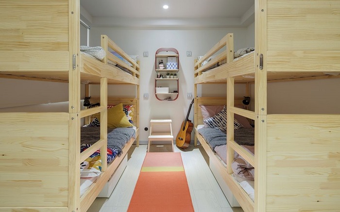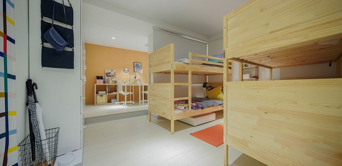 小资族也能拥有大空间,就算经济尚未完全独立,也能用自己负担得起的好价钱尽情佈置一番。这间房型能让四人入住,有共同聚会空间,可以讨论课业或是聊聊八卦,窝回上下舖也能保有独处小空间。