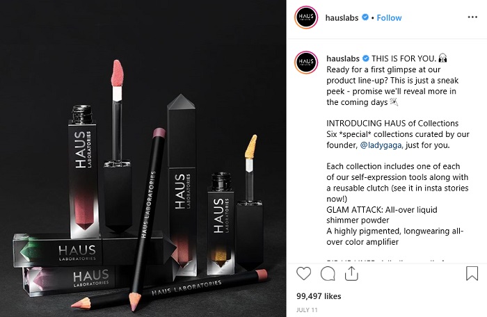 其实早在2008年的时候,Lady Gaga已经涉猎美妆界。当时她与MAC合作推出Viva Glam系列唇膏,一推出已经迅速售罄。而2018年的时候,Lady Gaga开始筹备个人品牌 Haus Beauty,粉丝们不难从Gaga Instagram caption里的 hashtag #hauseditorial #haus #hausofgaga,可见Lady Gaga一直有秘密地筹备。