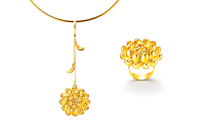 在《金喜连连》系列当中,值得大家关注的,是以莲花设计为主轴的《喜莲好运》系列首饰。由于莲花又以纯洁见称于世,《喜莲好运》的吊坠和戒指等首饰,让佩戴者展现出真善美的气质。所谓形象讨喜人缘佳,好运自然跟着来。
