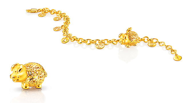 除了高贵大方的首饰套外,喜欢青春可爱、萌萌哒首饰的,就千万别错过《四宝》吉祥吊饰手链。《四宝》手链串上可爱的吉祥物如《守财猪猪》、《福猪》和《招财元宝》等福气小吊饰,肯定能带给您福到财到的好意头。