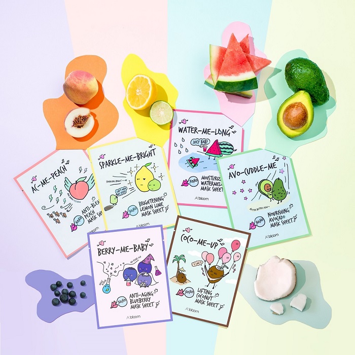 A'bloom系列面膜产品包括Moisturizing Watermelon Mask Sheet 充盈保湿西瓜面膜、Brightening Lemon Lime Mask Sheet 亮白柠檬面膜、Nourishing Avocado Mask Sheet 娇嫩润泽鳄梨面膜及Anti-Blemish Peach Mask Sheet 抗痘净化桃子面膜。每一款A’bloom面膜均通过临床测试,适合所有肤质(包括敏感性皮肤)安全使用。