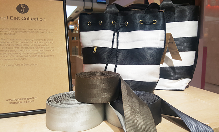 目前BIJI-BIJI Ethical Fashion 就在 Pavilion 购物商场六楼的Tokyo Street 设立了一座 Pop-Up Store,展示了各种由团队们共同利用别人舍弃的旧和服、安全带等材质,重新赋予新生命制作成一件件精致的包款、配件和服饰等!