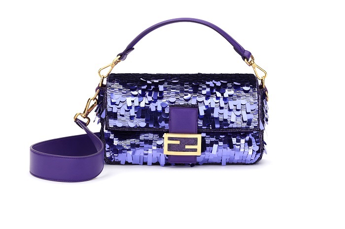 原版的紫色亮片Baguette手袋是Fendi于1999-2000 秋冬季系列作品。2019复刻版采用更加浓郁深邃的紫色,通过形状各异、大小不一的亮片打造出3D效果,标志性FF logo 搭扣与优雅的金色金属细节完美呼应。为了更加适应现代生活方式,包包配有可拆卸紫色皮革肩带和手柄,斜跨或手提轻松转换,加强了实用性。