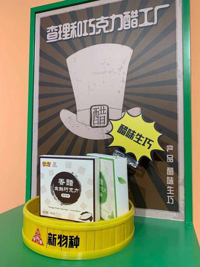 这个是镇江陈醋百年老字号,将醋的元素加入各种小吃当中,发挥了其创意的精神。老字号的新革命,看来是很成功哦!这醋味巧克力深受大家的喜欢,口感方面就是带点酸味的巧克力,值得一试哦!