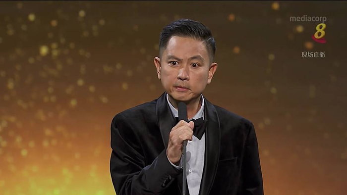 获得特别成就奖的周初明在演艺圈多年,尽管近年来患有肌肉萎缩身体大不如前,但热爱演艺事业的他在获得奖项时数度哽咽表示:“就算坐着也要演下去,因为我是一个演员,演员的工作就是要对自己的戏负责。”