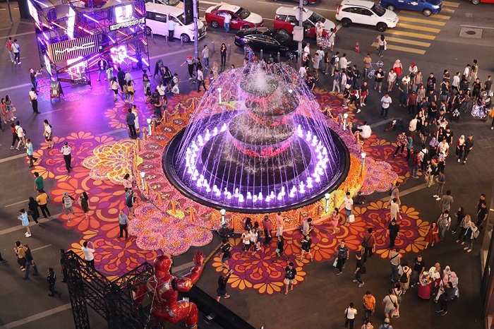 Pavilion KL今年的屠妖节主题是Divine Diwali,五彩缤纷的装饰太耀眼了。商场外的水池也被用作装饰的重点地方。从即日起到10月31日,你可以前来Pavilion KL这个列入马来西亚记录大全的“The Biggest Illuminated Fabric Flower Kolam”拍照打卡留作纪念,而且每天晚上的8点整都会有LED灯表演哦!