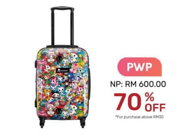 原价RM600的20寸手推行李箱,只要你在Guardian满额购物就能以RM170的超级优惠价格带回家。行李箱配上可爱到犯规的图案,推着它出游还别说不拉风呢!!整体设计也不是仅仅可爱,还散发着潮流元素,男女皆宜的款式。