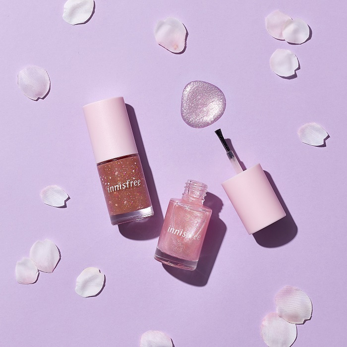 樱花系列最后还有双色指甲油,裸棕色带着亮片不无聊,樱花粉色更是带着细细的闪光,属于很容易上手的颜色。有没有让这次樱花系列戳中少女心呢?三月份正式在全马innisfree门店上架,眼影盘留一盒给我ok?