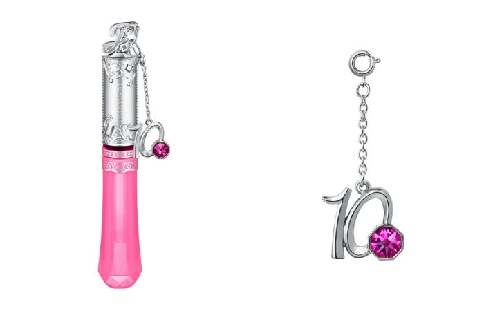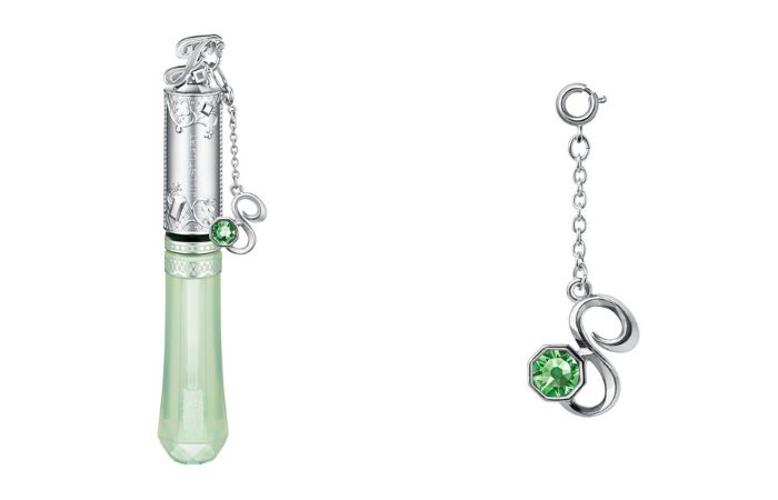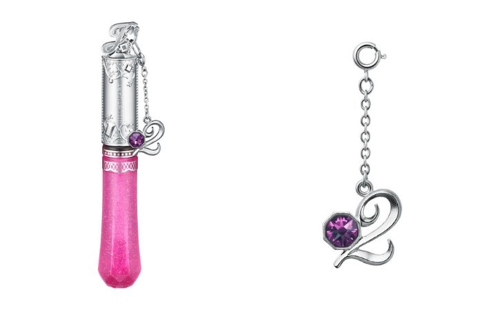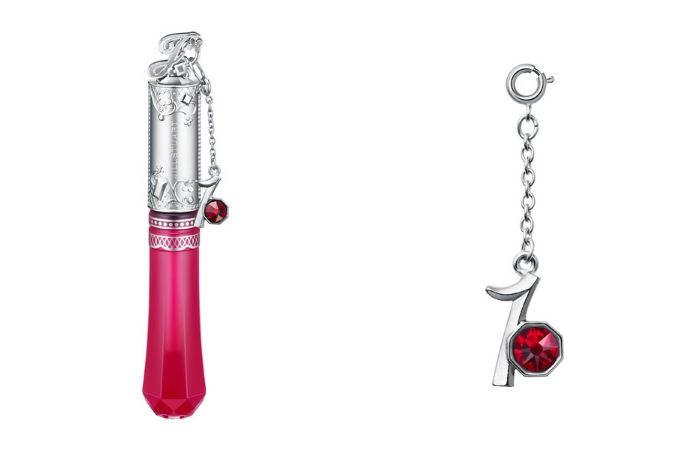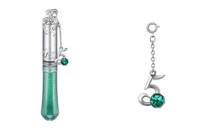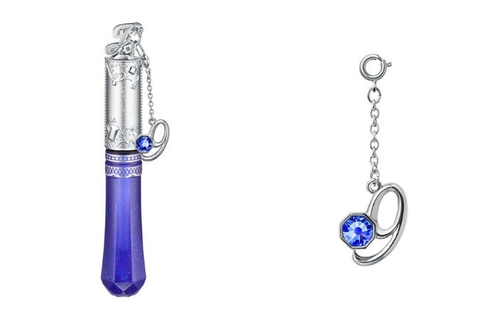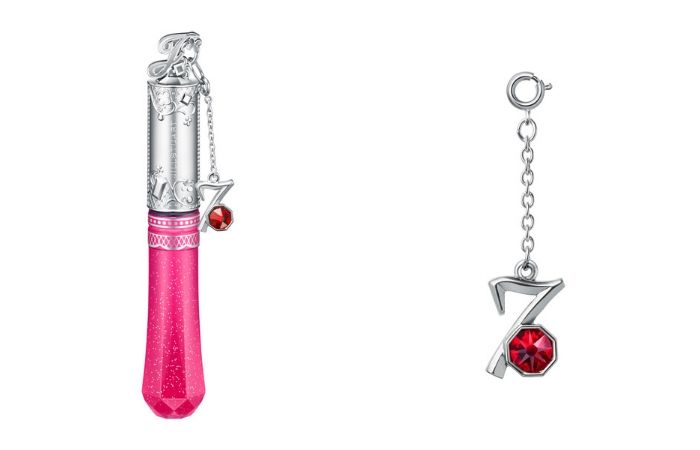 唇蜜顶端有着字母「J」的精细造型,搭配着阿拉伯藤蔓与蕾丝花纹。同时每支唇蜜中都附有代表该月的数字吊饰,点缀着诞生石同色的施华洛世奇水晶更显精致。