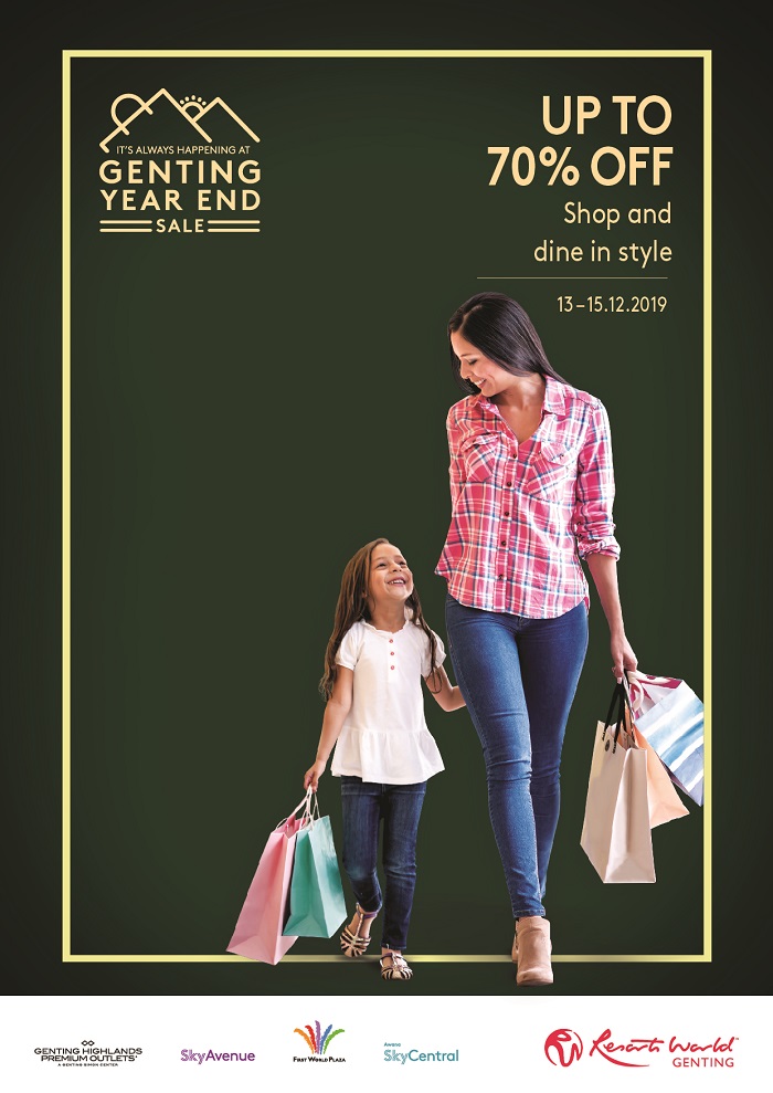 年终有好康!2019年云顶年终大促销将于12月13日至15日引爆。一切“购”便宜、“购”好玩、“购”好吃的好康,尽在云顶云天大道、云顶第一城、阿娃娜SkyCentral和云顶高原名牌折扣购物中心。