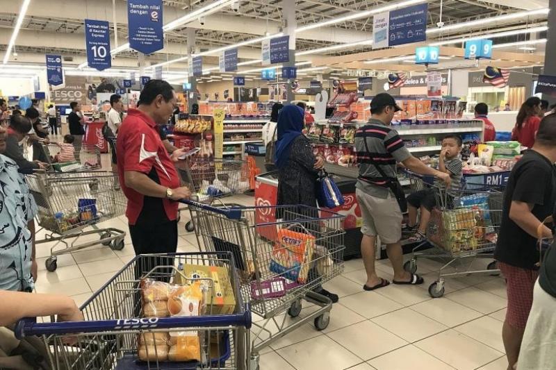 小时候:去商场买年货,塞满一辆辆的购物车,排队等结账,特别热闹