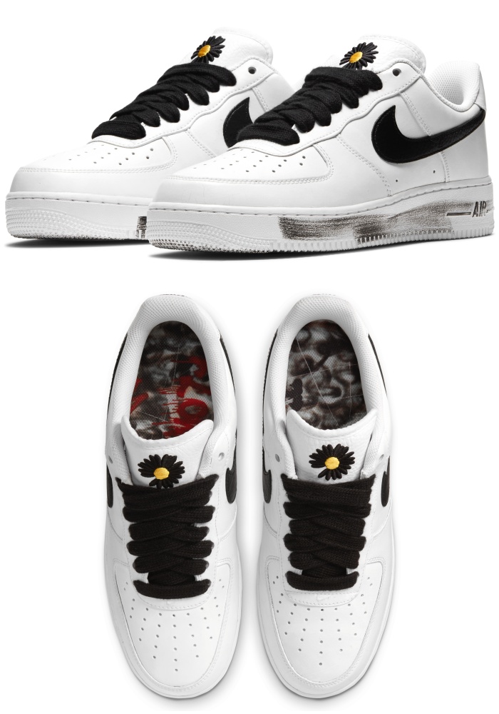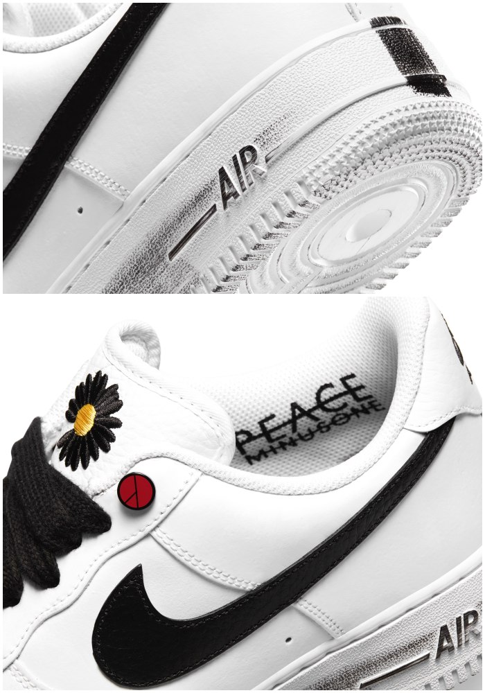 在去年就合作过一次的G-Dragon和Nike,今年2020年再续前缘,保留了Air Force 1鞋舌的小雏菊刺绣图案,靠近鞋底的油漆刷旧细节、涂鸦风鞋垫,以及鞋内Peaceminusone的标志Logo。第二代最大的不同就是采用了白色为基底,比上一代的全黑设计「明亮」了不少。