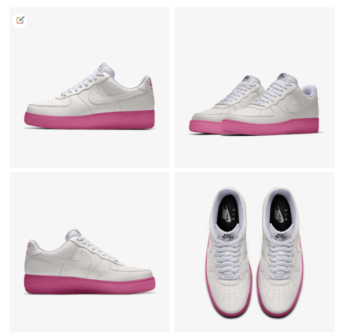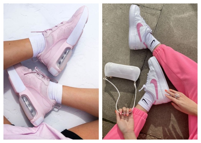女生必备的白色鞋款飞Air Force 1 莫属,BUT,如果有粉红色的鞋底感觉就更加不能不收了!鞋面采用全白设计,厚底则以糖果粉红呈现,完全是超级显比例的选择。(这款鞋可以制定哦,所以还能选粉红色Nike 勾勾~)
