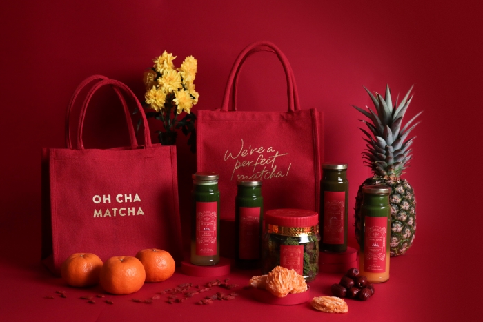 如今,一家时尚新潮的抹茶店 Oh Cha Matcha 与传统老品牌老行家携手合作,一起为这个新年推出新春礼包,采用厚实和喜庆红色的礼袋,表面上印有奢华金色的字样,不会让整体显露出老气,相反还带来了一股活力气息感。