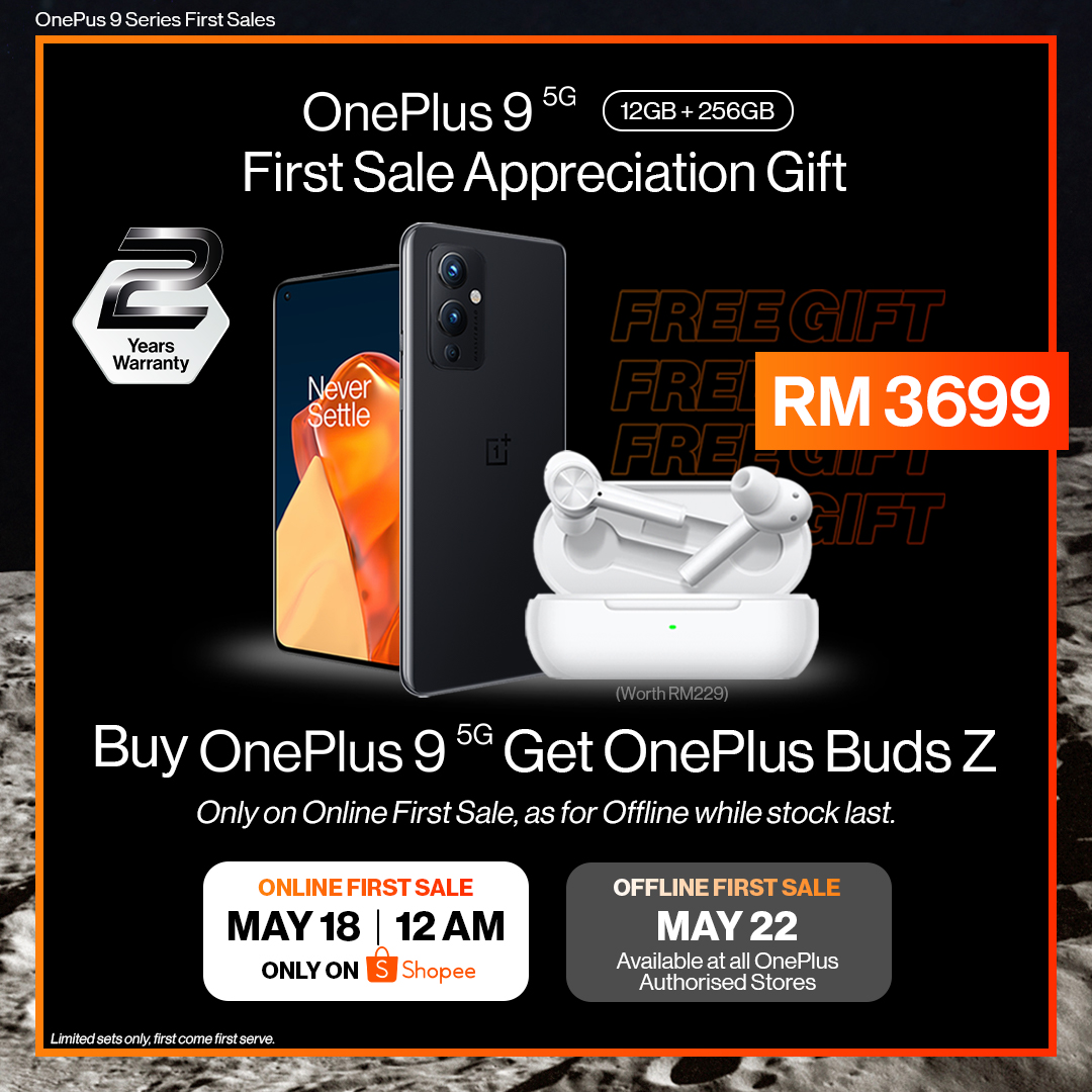 售价方面,OnePlus 9的价格为RM3699,OnePlus 9 Pro价格则是RM4299。OnePlus 9将在5月18日12AM在Shopee平台售卖,5月22日则在授权商店售卖。在线上首卖日当天购买的朋友将可以获得1+1年的保修以及OnePlus Buds Z真无线耳机。