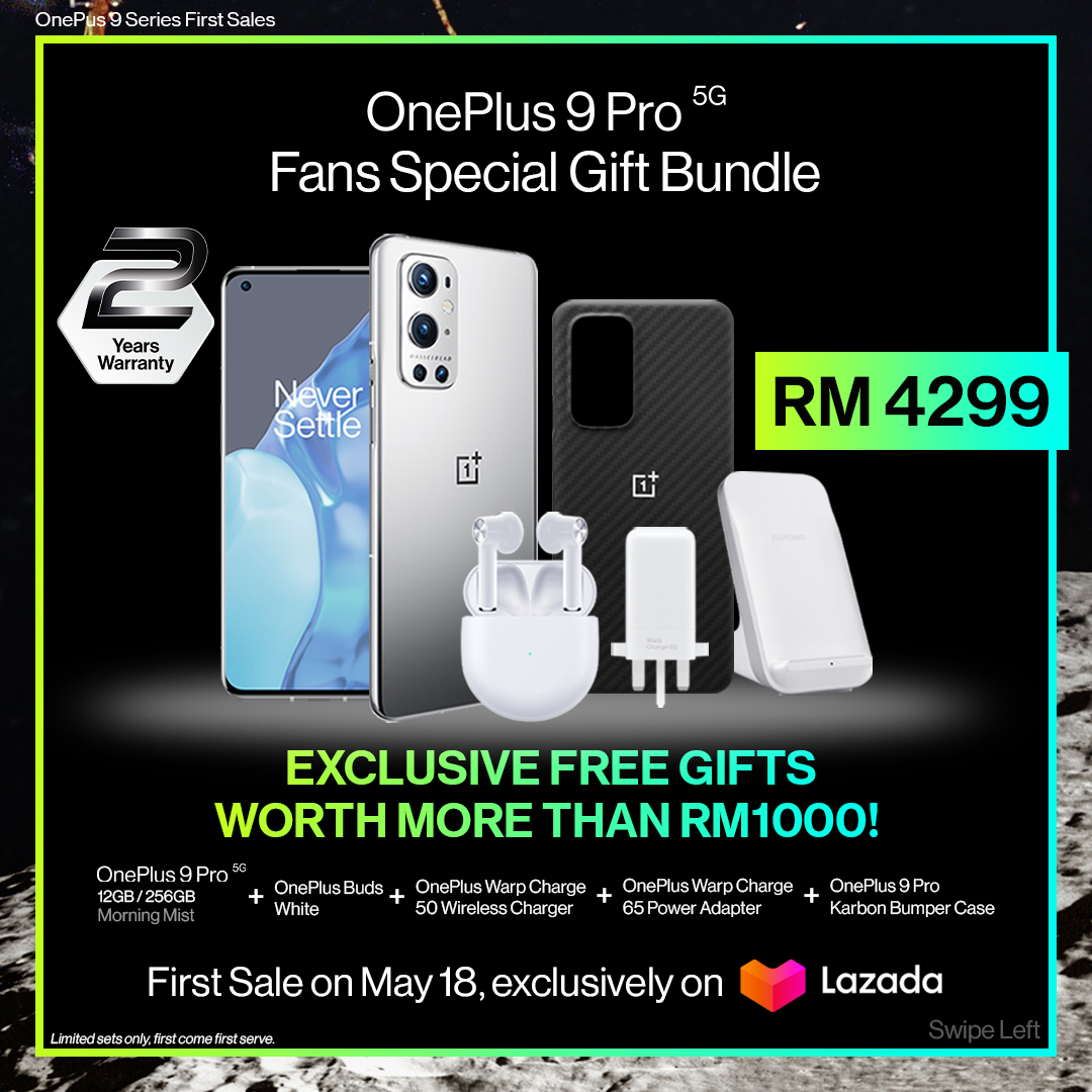 至于OnePlus 9 Pro则在5月18日在Lazada平台上售卖,购买者可以获得总值RM1000的赠品,其中包括了OnePlus Buds White、OnePlus 65W Adapter、OnePlus 50W无线充电器以及OnePlus Karbon Bumper手机壳,数量有限。