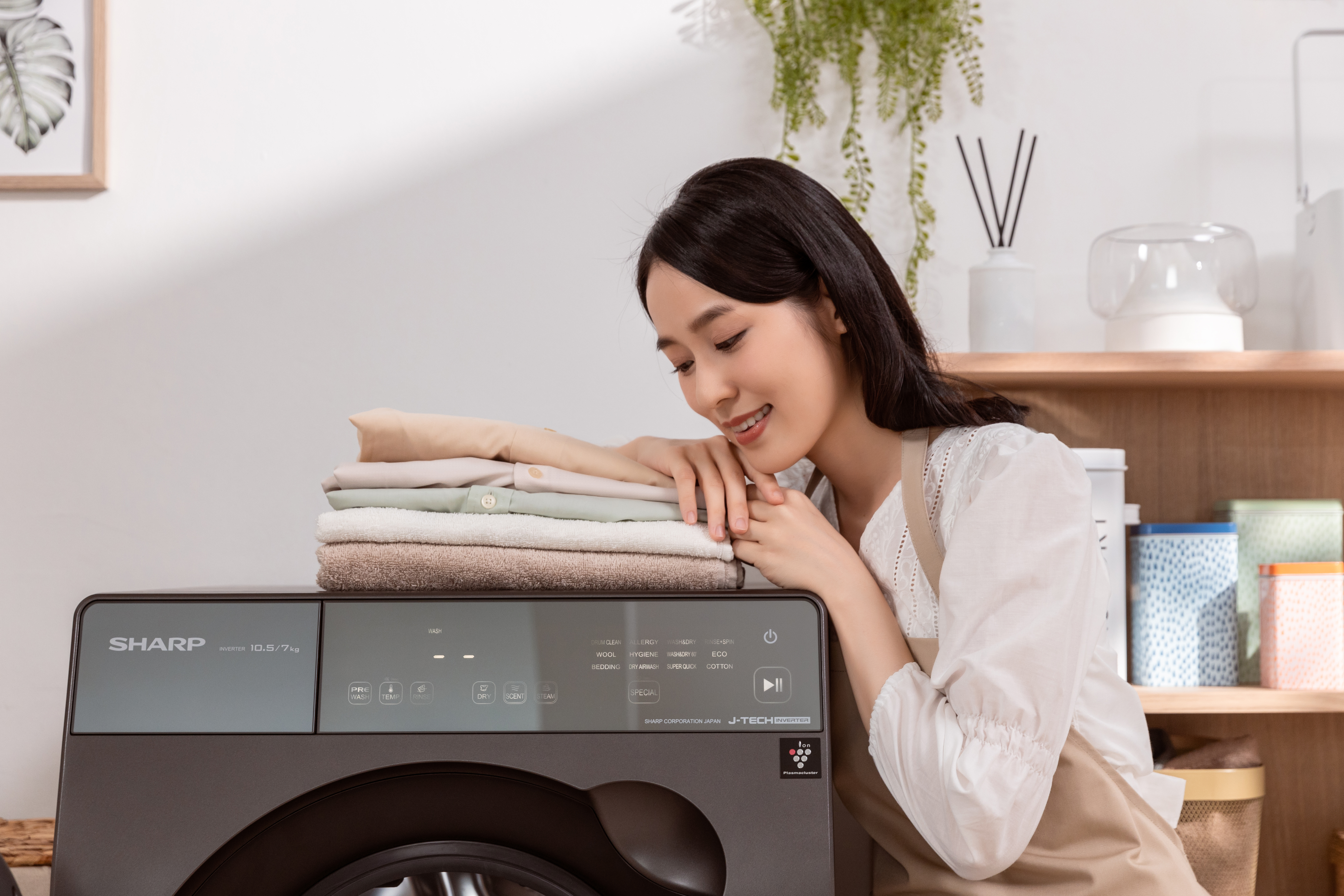 Sharp Pro-Flex多功能洗衣机拥有全新独家 Plasmacluster自动除菌离子技术,消除残留在织物上肉眼所看不见有害细菌和微生物细菌,同时透过释放与自然环境相同的正负离子,10分钟的Dry AirWash 免水冲洗功能可以有效抑制衣物上的异味、花粉并及防止细菌生长。