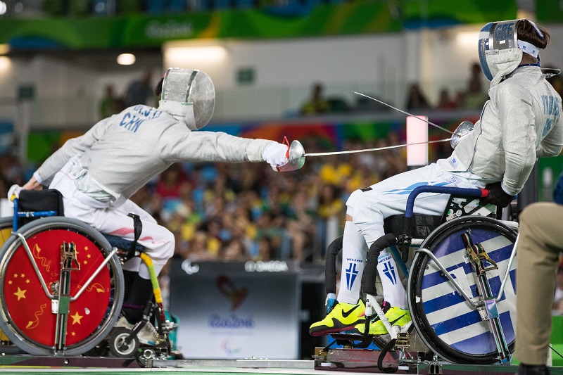⭕ 轮椅击剑手下半身佩戴金属围挡,以确保非有效触击不会被计算在内。