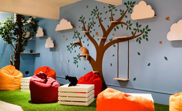 这家就算家里没有宠物也可以到这里去与餐厅里的宠物共度时光,店内有一家专门为猫咪准备的接待房间,你只需要点一杯饮料换上干净拖鞋就能跟去跟猫咪们玩耍。