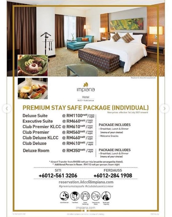 推荐原因:地理位置就在Pavilion商场附近,房型也偏大适合一家两三口隔离。酒店有提供7、10、14天的隔离配套,价格都是包括一天四餐,很方便!