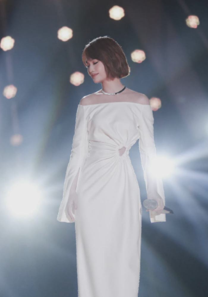 日前参加节目的杨丞琳就穿了一袭纯白礼服亮相,第一眼大家都觉得是气质满满的礼服,殊不知原来好戏在后头呢!这件来自设计师品牌Markgong的礼服前方设计简约利落,在腰际处有个抓皱和小圆孔细节,裙子轮廓也贴着杨丞琳的曲线展现。